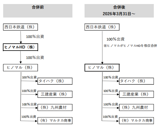 さて、本日開催の各社株主総会において、ヒノマルホールディングス株式会社(以下、甲という。住所:東京都中央区日本橋三丁目2番5号)とヒノマル株式会社(以下、乙という。)は、2026年3月31日を効力発生日として、甲を吸収合併消滅会社、乙を吸収合併存続会社とする吸収合併(以下、本吸収合併という。)を行うことといたしました。本吸収合併により、乙は甲に関する権利義務を承継いたします。